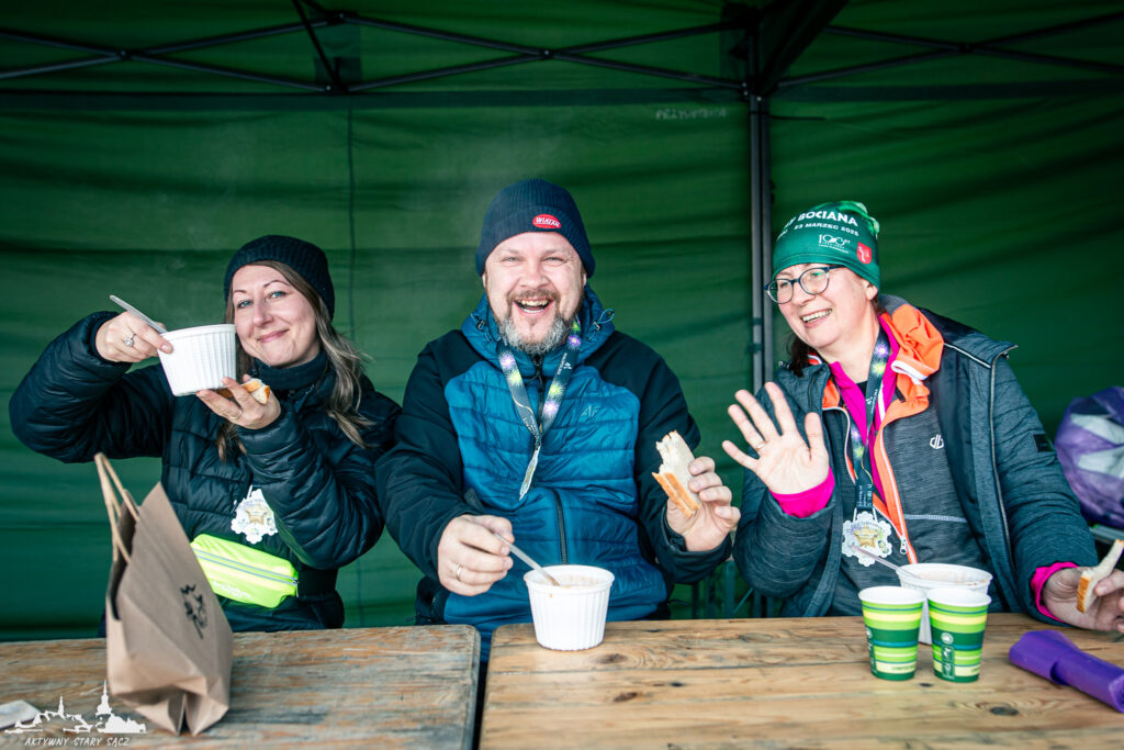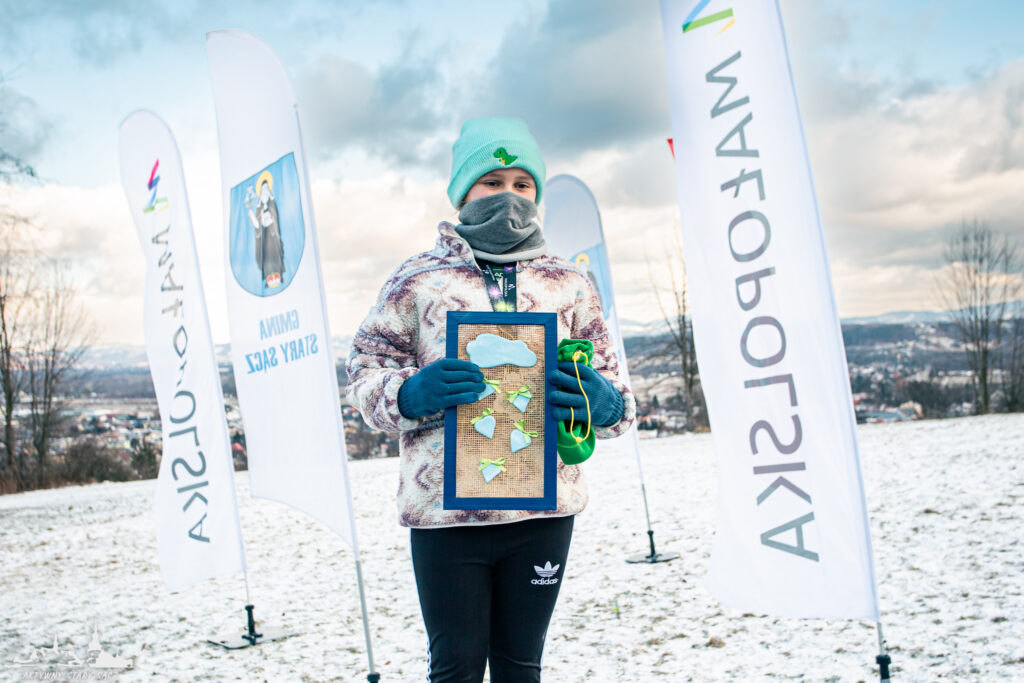 Nieocenione było także wsparcie wolontariuszy z Liceum Ogólnokształcącego im. Marii Skłodowskiej-Curie w Starym Sączu pod okiem pani Małgorzaty Doruli, którzy zadbali o sprawny przebieg rejestracji w biurze zawodów, wręczenia medali i strefę gastronomiczną